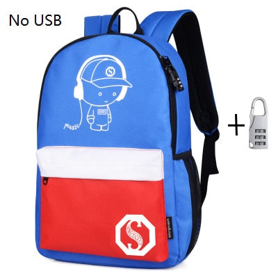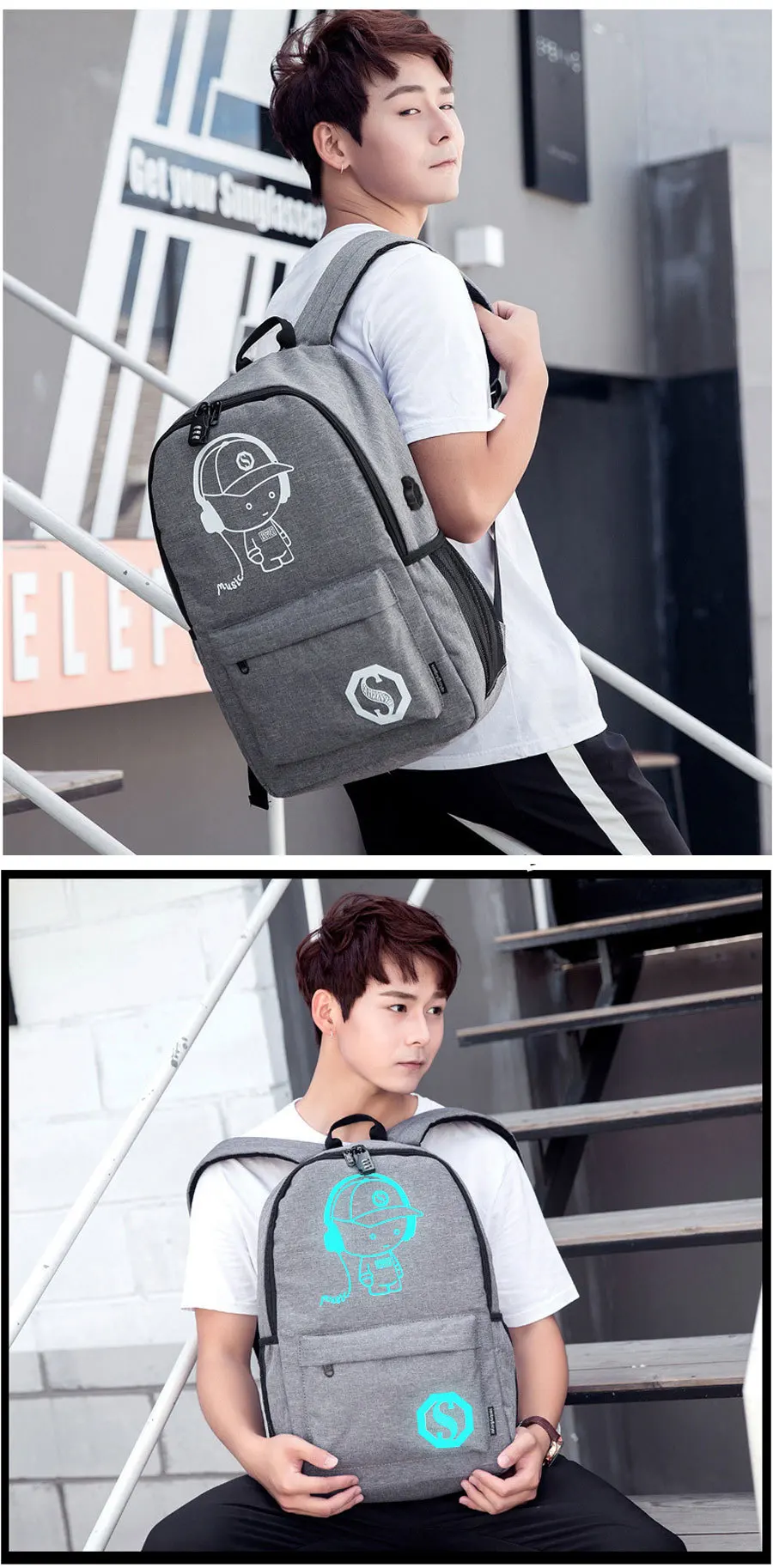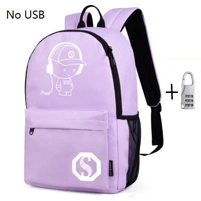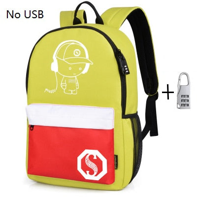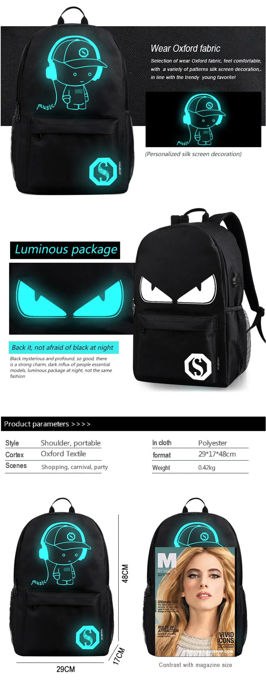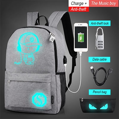 Style: Anime Luminous USB Charge Laptop Computer Backpack