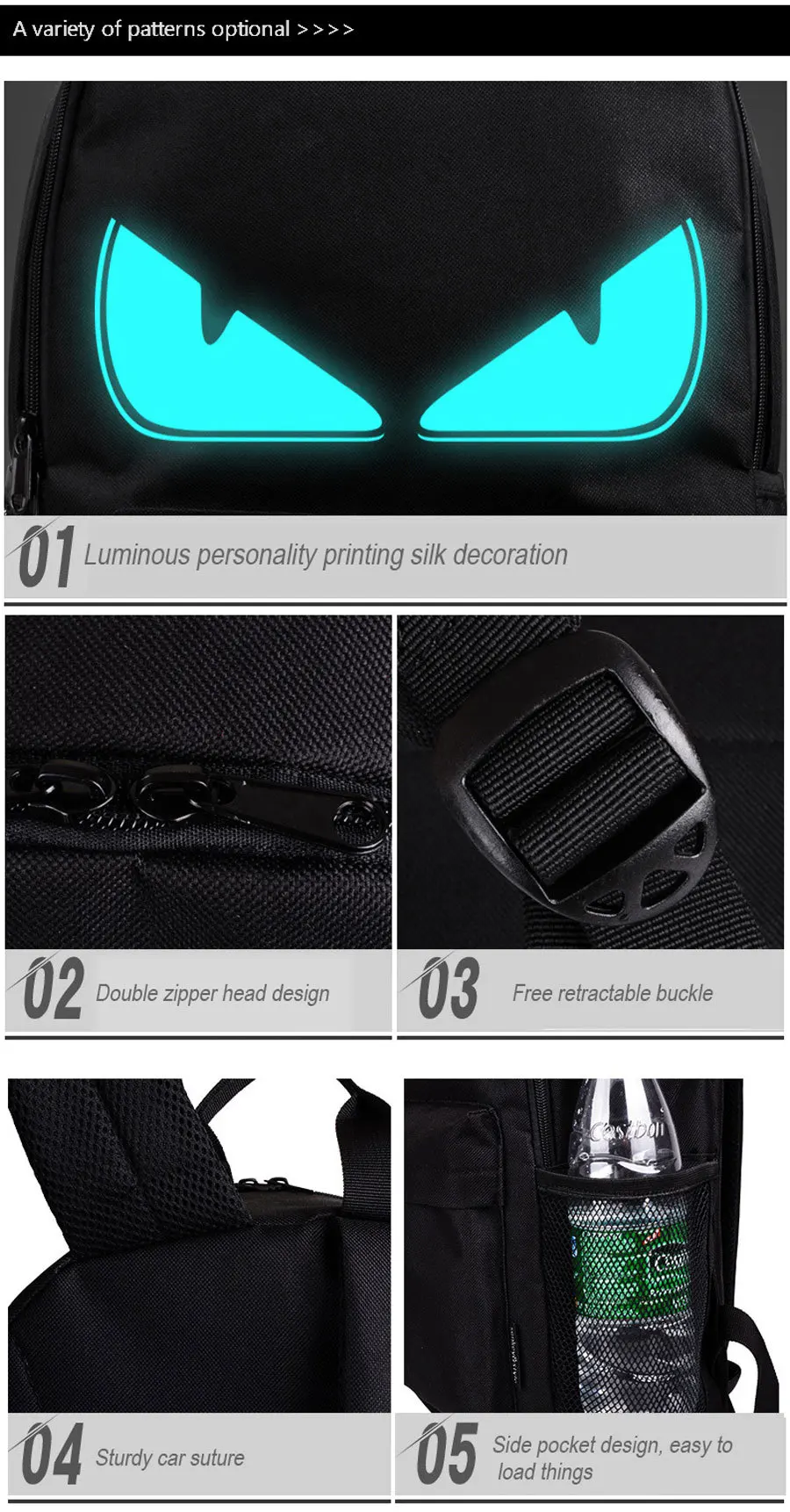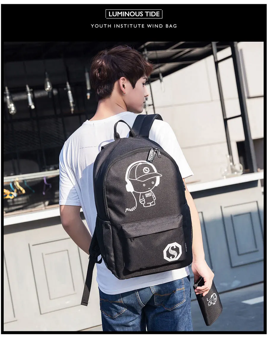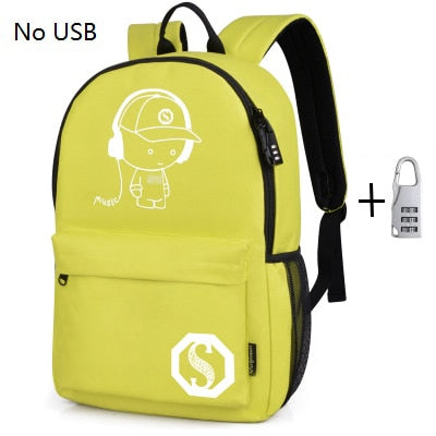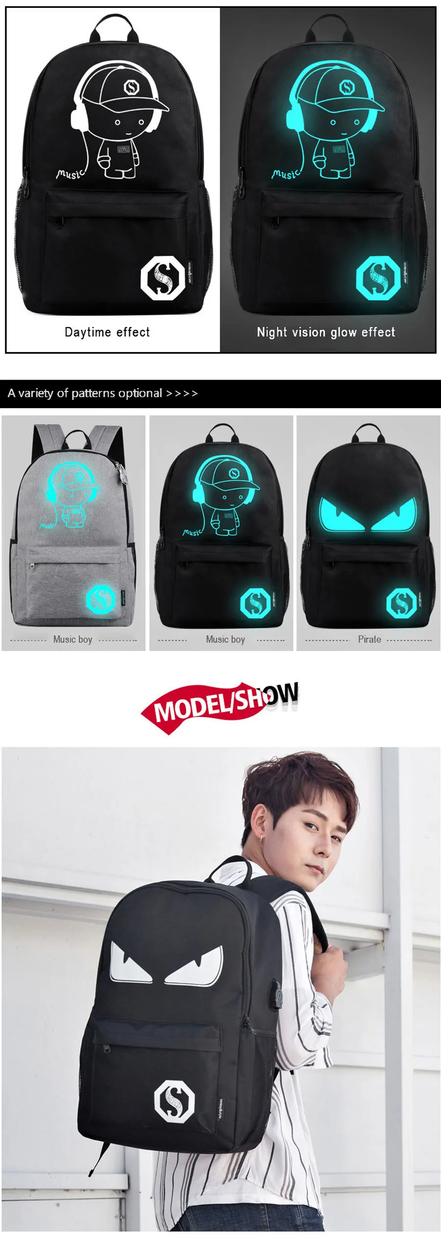 Style: Anime Luminous USB Charge Laptop Computer Backpack