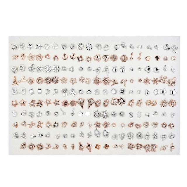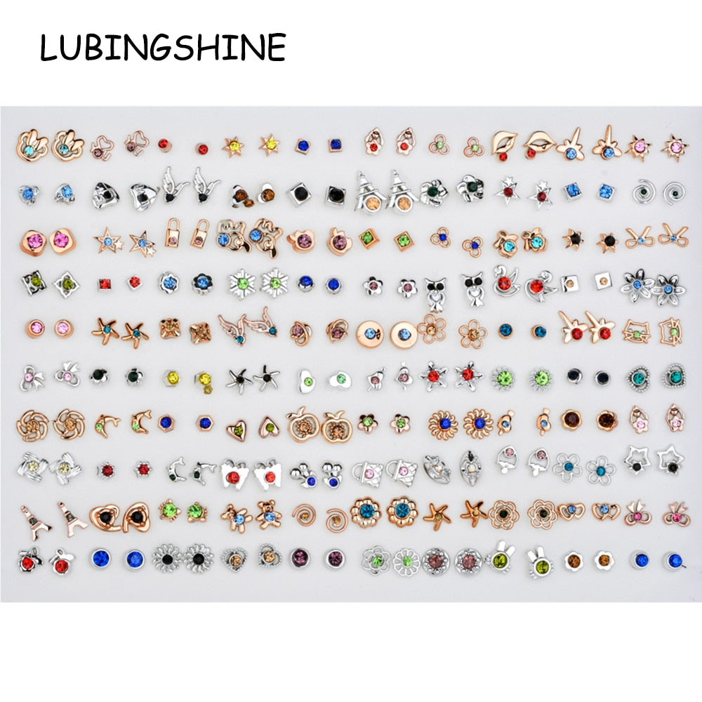 LUBINGSHINE Women 100 Pairs /Lot Cute Acrylic Crystal Small Stud Earrings Sets Girl Child Birthday Jewelry Christmas Gift